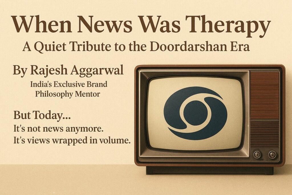 Our Blogs 🕊 When News Was Therapy: A Quiet Tribute to the Doordarshan Era ✍ By Rajesh AggarwalIndia’s Exclusive Brand Philosophy Mentor ⸻ I didn’t grow up chasing prime-time debates.I grew up observing silence.And that silence used to have a name: Doordarshan. 9 PM wasn’t just news hour.It was a sacred hour.Of calm voices. Unrushed …